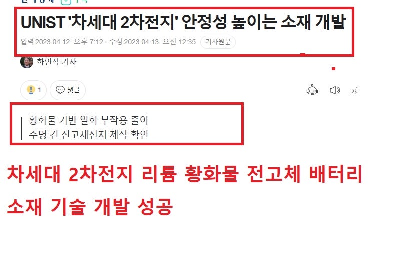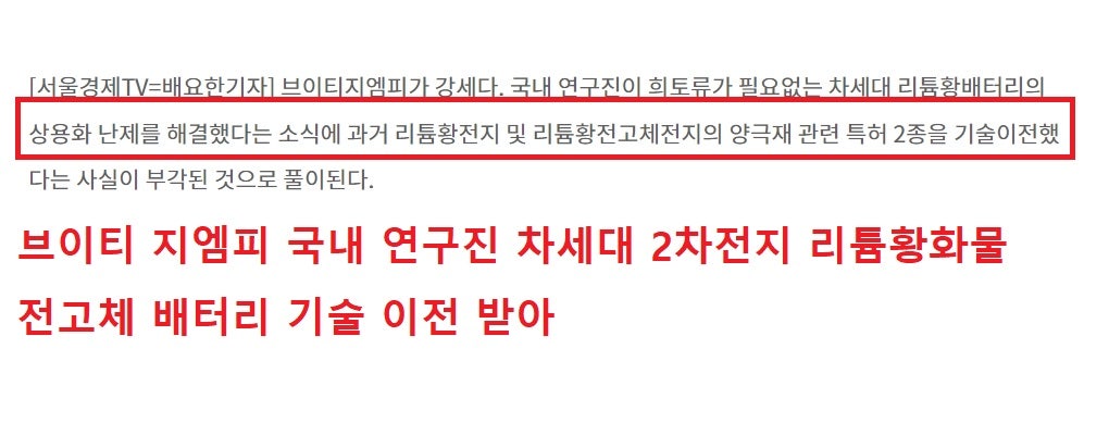 [단독] 차세대2차전지 리튬황전고체 배터리 소재 개발 성공 기술이전 브이티지엠피