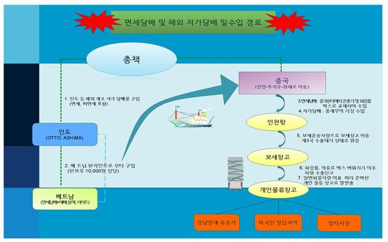 이들은 범행이 발각될 것에 대비, 담배를 5개의 보세창고에 분산 보관했다. 또 판매에 있어서는 추적이 어려운 위쳇 등을 이용했고 현금거래를 원칙으로 했다. 특히 총책인 김씨는 '국정원 김사장' 등 7개의 가명과 대포폰 등을 사용한 것으로 드러났다.
