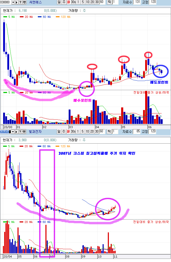 위에 올린 차트와 내가 말하는 차트이론은 바로 수급을 원칙으로하는 투자를 설명한 것이다.