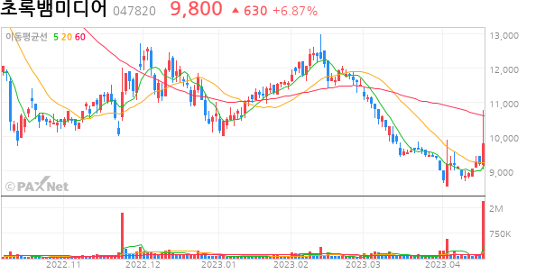 자회사 초록뱀이앤엠(리튬이차전지 전해액) 상한가