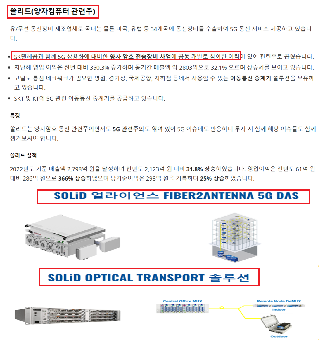 쏠리드는 유·무선 네트워크 장비 제조사로 양자암호통신 장비와 연동이 가능한 전송장비를 개발했다.