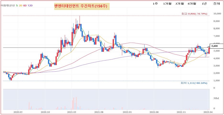 <기간조정,가격조정 마무리 본격 턴어라운드 시작한 팬엔터 주간차트-올해 역대급 대작드라마 다수제작과 넷플릭스 계약체결로