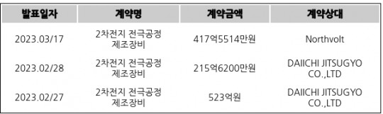 계약기간은 2023년 3월 29일부터 2025년 9월 30일까지 총 공급기간은 916일이다. 이번에 체결한 공급계약 금액은 최근 매출액 1327억3795만원 대비 55.64% 규모다.