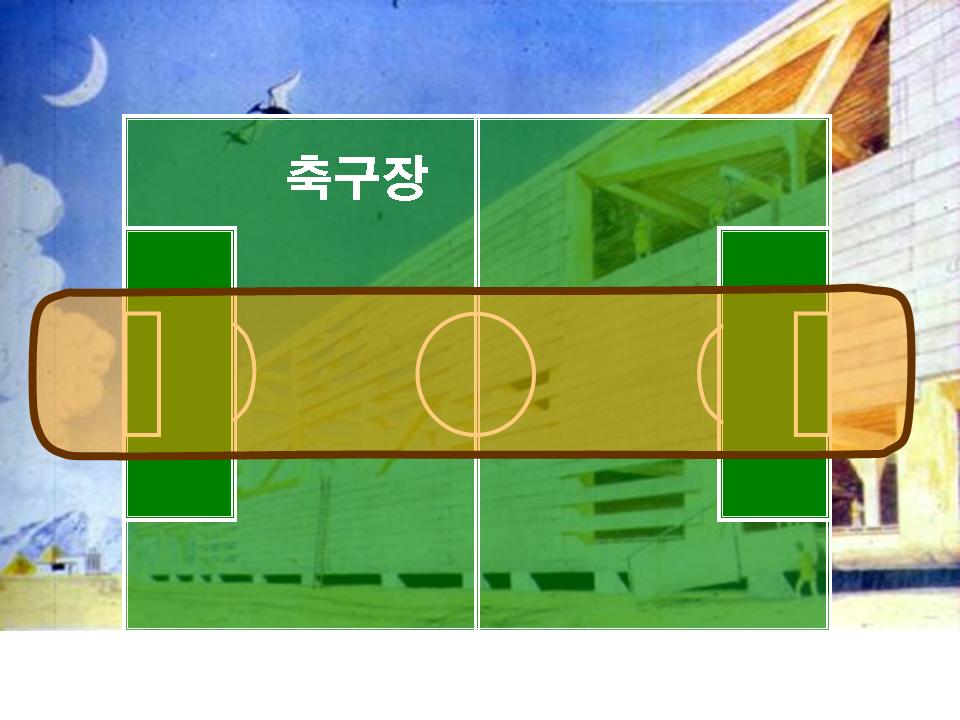 잠실 메인스타디움 축구경기장과 비교했을 때, 위의 그림 정도입니다.)