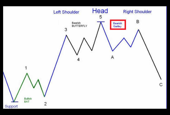패턴(butterfly)이 발생하고, 그 다음 A-B파동에서도 하모닉 패턴(Gartley)이