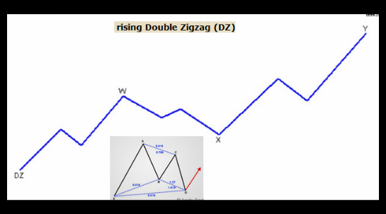 방향성을 가지곤 하는 라이징 더블 지그재그(rising double zigzag)는 엘리어트의 3급