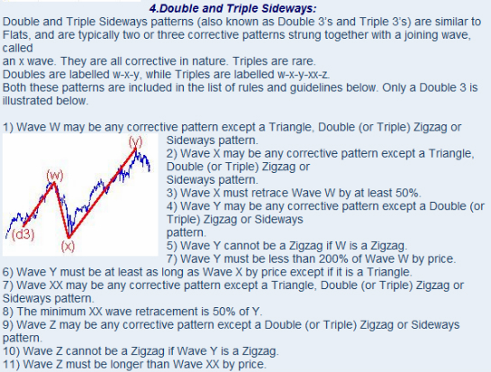 W-X-Y는 상향,하향,횡보 등에서 러닝콜렉션, 불규칙 미달성(다른 용어로는 확장된 플랫)을
