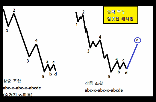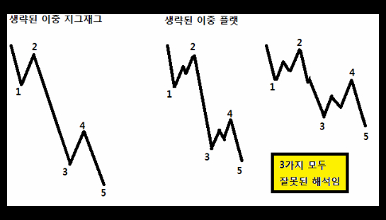 위 3가지는 파동 카운트에서 잘못된 해석을 한 사례이다.