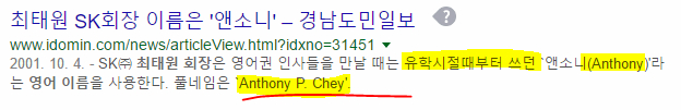 최태원 회장 유학시절 anthony 란 이름 썼다고 하고....뭐 중간이나 라스트네임은 바뀔수있으니..