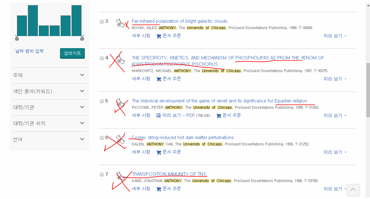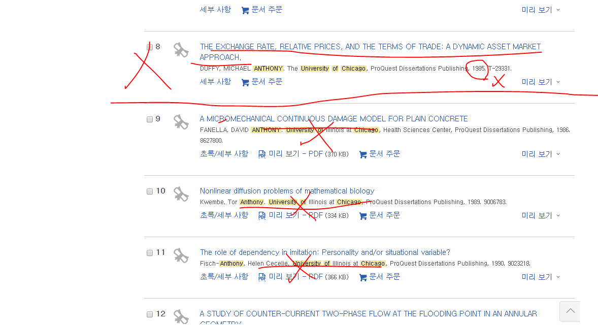 일리노이 시카고대는 제외...총 8건 검색되었는데