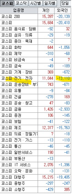 거래소는 무려 2조 이상 초대량 매도이고, 코스닥은 약 5천억 대량 매수이다. 코스닥 저러 함은 금 정부에서 코스닥 활성화 방안 마련하는 발표에 대한 반응으로 제약 바이오 업종을 집중 매수한 탓이다. 정부의 개입이 없었다면 과연 저런 매수를 하였을까? 그리고 그럼에도 거래소는 현물 매도 규모를 업종 전반에 확대시킴 가속이었다.