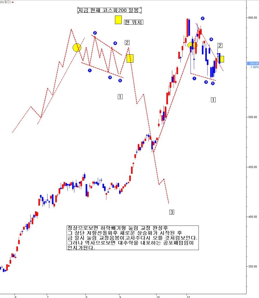 신고가 재발생 유무에 따라 유연하여야겠지만, 촉이지만 12월 장대 음봉이 나면서, 파국 파동의 본격화됨을 투자자들에게 강하게 경고를 할 것 같다.