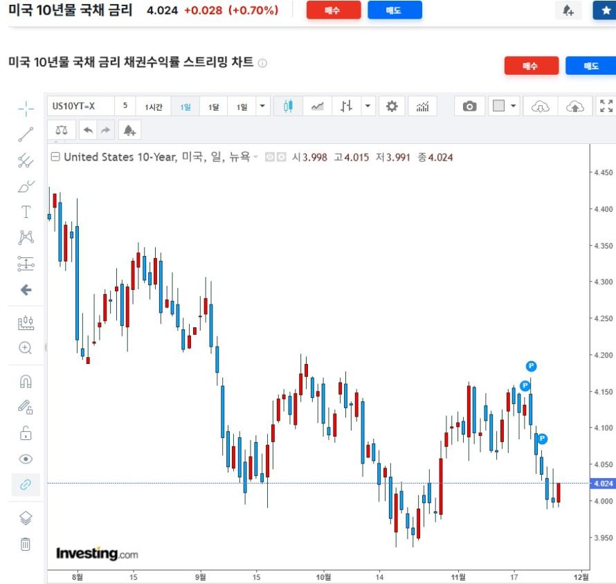 미국 국채 10년물 5.1 시초가 4.220% 9.26 금 현가 4.178% 등락폭 -0.042% 등락률 -9.95%