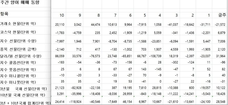 주간 양이 매매동향