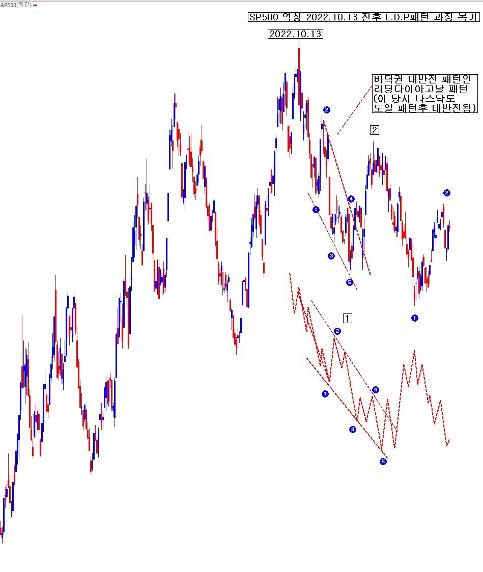 SP500 2022.10.13 저점 이후첫 상승쐐기형 L.D.P파동 과정 복기