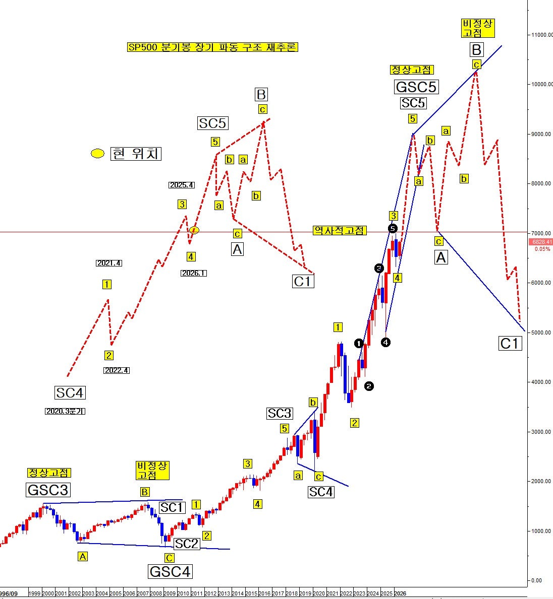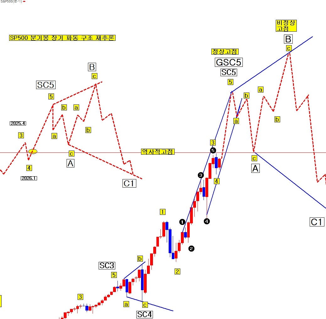 SP500 분기봉 장기 파동 구조 재추론도