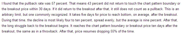 Pullback율은 57% 정도이며, 이는 43% 정도의 경우 30일 이내에 이전 breakout한 주가회복이 아예 안되