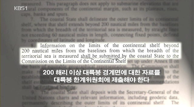 유엔 해양법 76조에서는200해리를 넘는 대륙붕의 경우 왜 자국의 영토인지 그 자료를 제출하라고 했습니다.