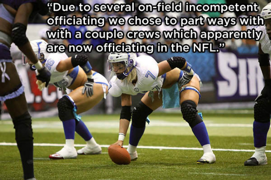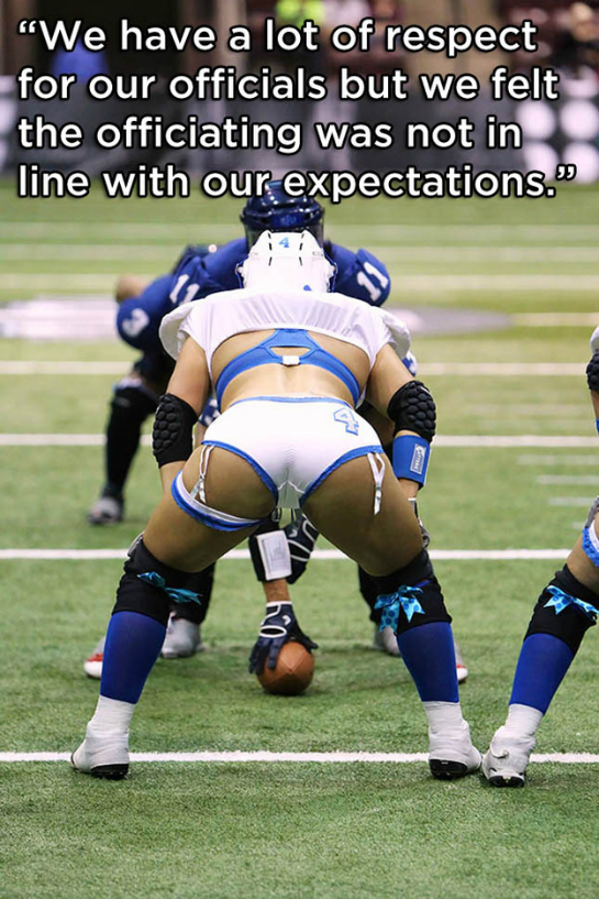 여성 속옷 차림의 미식 축구 경기의 信賴性과 선수들의 安全을 보장하는 경기를 운영하는 현장에서 유능한 심판진을 원했으나.