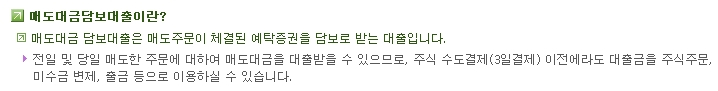 의문을 제기하셨습니다. 그래서, 제가 키움증권의 매도대금담보대출규정을 찾아보았습니다.