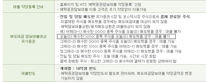 네모칸에 보시면 오늘 매수한 종목 오늘 매도했을경우 : 대출불가 라는글을 읽을 수 있습니다.