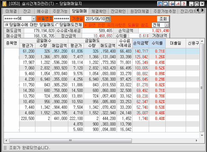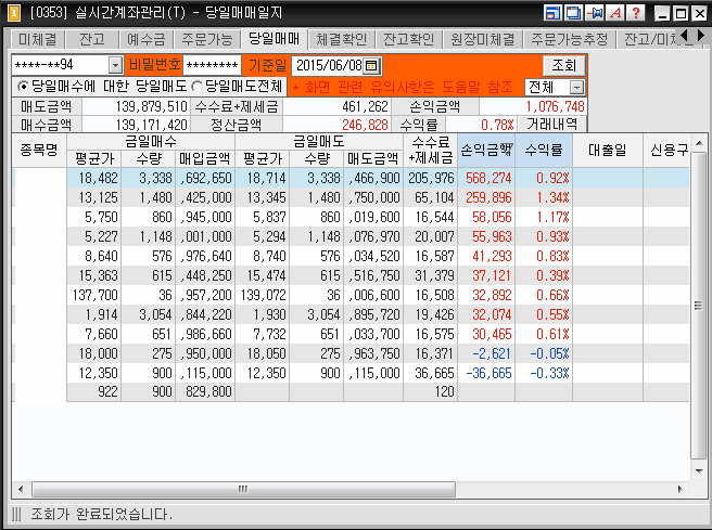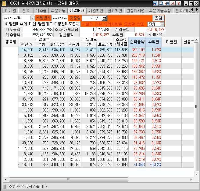 상한가 매매로 번 돈은 안나오게 했습니다. 오로지 스캘핑 매매수익만.