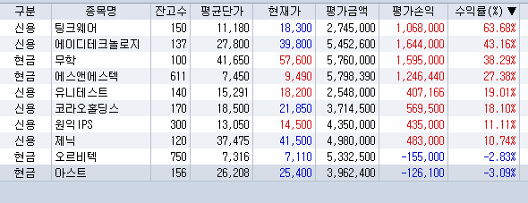 요것은 제가 기존부터 상한가매매와 함께 해왔던 스윙매매 계좌입니다.