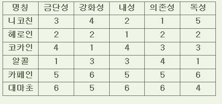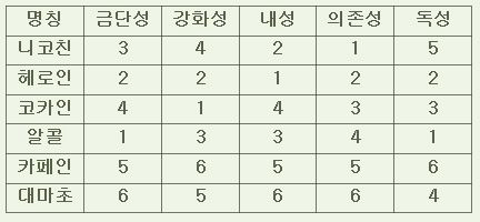 (높은 숫자 =높은 효과) (필립힐츠의 NIDA 보고서의 약물비교)
