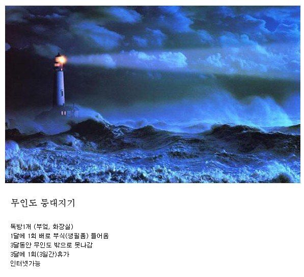 사람 한명도 없는 무인도에서 혼자 등대를 지켜야 하는 일인데요