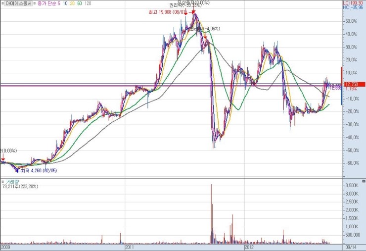 아이에스 동서의 차트입니다.