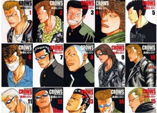 크로우즈는 여러 무리가 있던 스즈란고교를 중심으로 빡빡이군단인 호센학원, 보우야의 의형제인 불독의 다키야상고와 개그 2인조(마루켄, 가쿠켄)의 쿠로사키공고가 합쳐진 구로다키연합, 그리고 겁나 폼잡고 다니는 무장전선 이 네그룹의 이야기를 하고 있어..