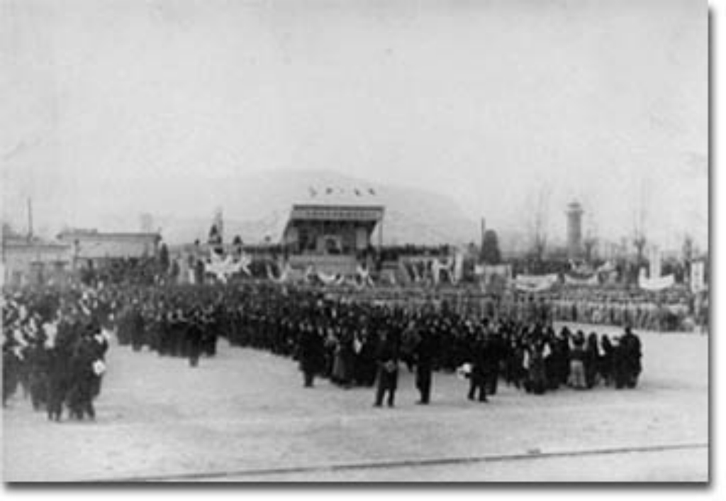 대한민국 임정요인들의 귀환을 축하하는 국민들(1945. 12. 19, 서울운동장)