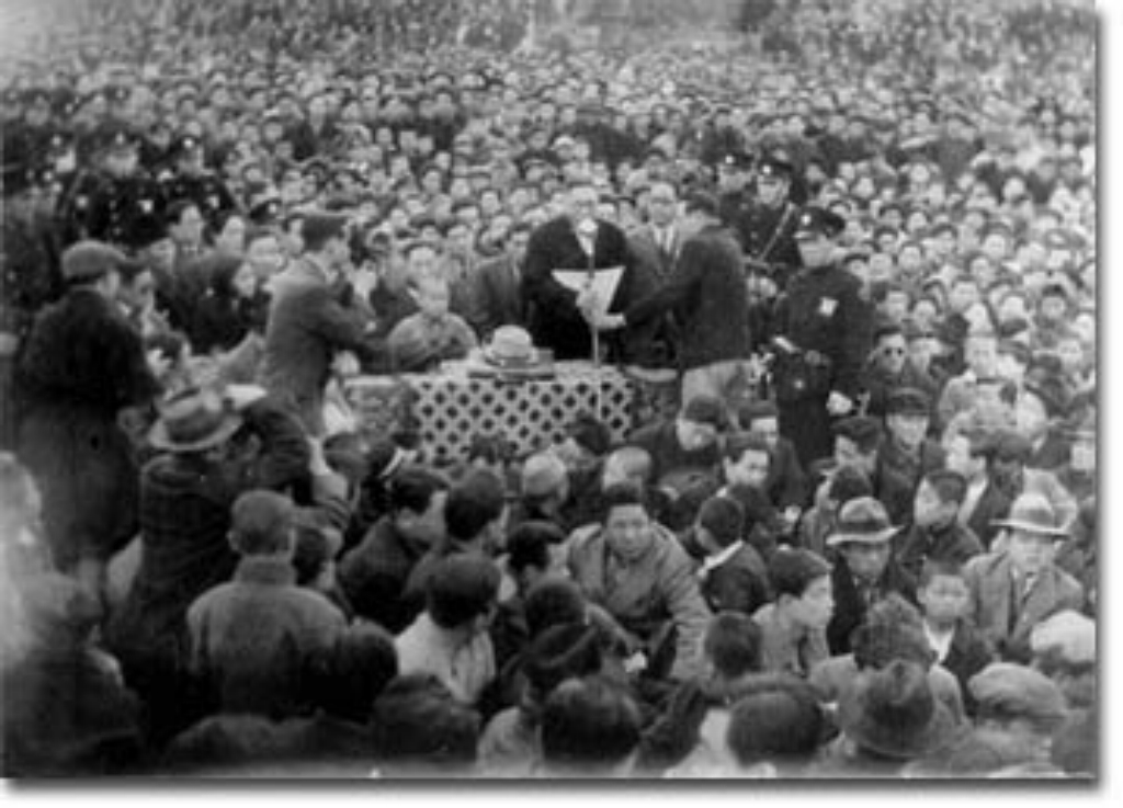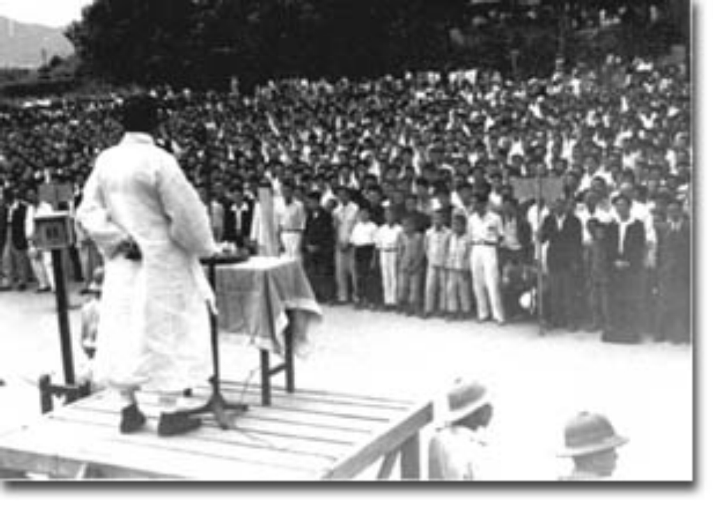 대규모의 반대신탁통치 반대 전국대회에서 연설하는 선생(1945. 12. 31)