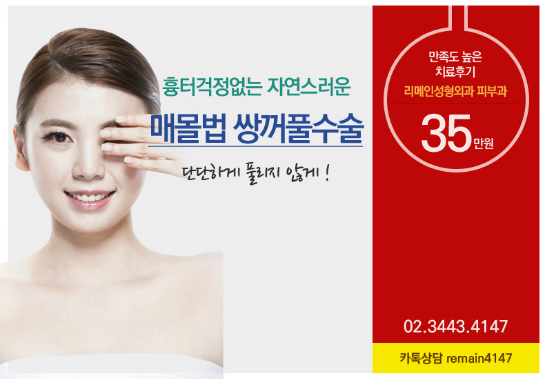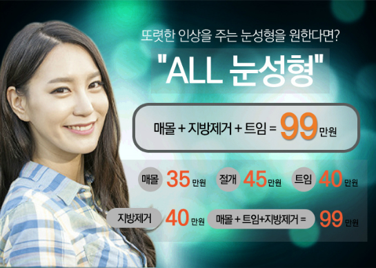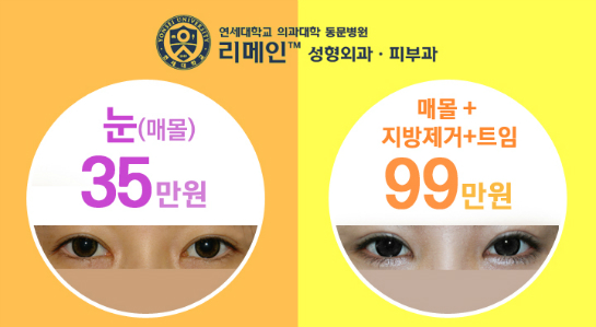 매몰 35만원, 절개 45만원, 트임/눈지방제거 40만원
