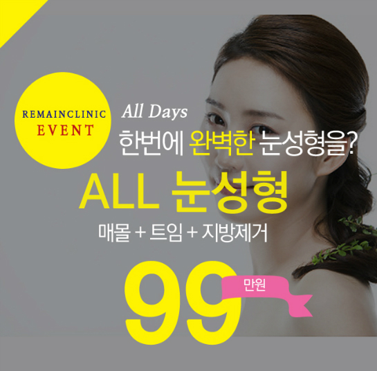 100만원도 되지 않는 착한 가격에 강남 성형외과에서 쌍수와 뒷트임을 할 수 있는거죠!