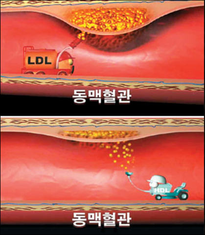 엘디엘 물질과 결합된 콜레스테롤이 우리의 혈관 벽에 쌓이게 되면서