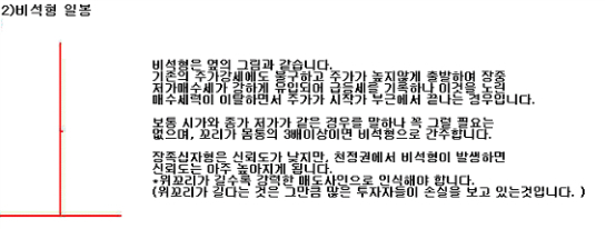 다만 주가의 바닥권 탈출 시기에서 이패턴이 발생하면 세력의 물량받기일수도 있으며, 단기 물량소화후 주가가 급등하는 경우도 있습니다 .특히 저항선 돌파후 발생하는 비석형은 단기 조정후 주가가 재상승할 가능성이 아주 높습니다.