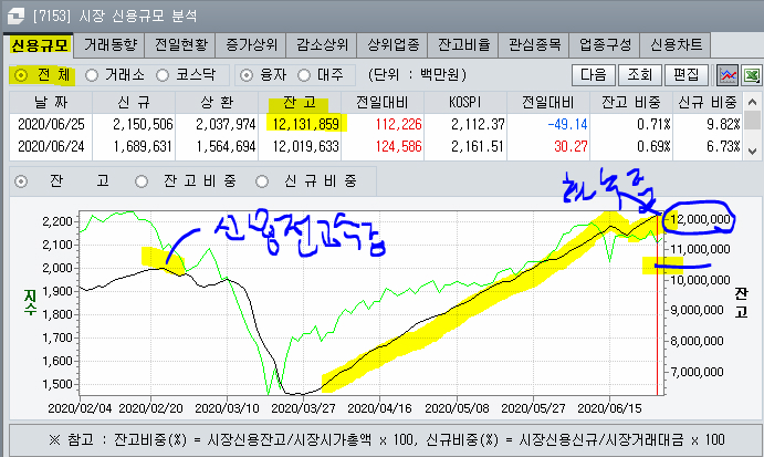 그러함에도 미국 시장에 보이는 손들은 최근 2주간 무려 5번이나 개입하여 거품을 부추켰다. 전주 화수목금 4일 연속 그러하였고, 금주는 목요일 밤에 뜬금포 볼커룰 완화 조치로 그러하였다. 그럴시마다 조선의 개미들은 신용잔고를 늘리면서 탐욕을 꾸준히 키웠으며, 시장도 강세를 좀 더 지속하는데 일조를 하였다. 그러나, 잊지마라. 현재 시장 상황에 탐욕을 키우면 댓가를 치르게 됨을...