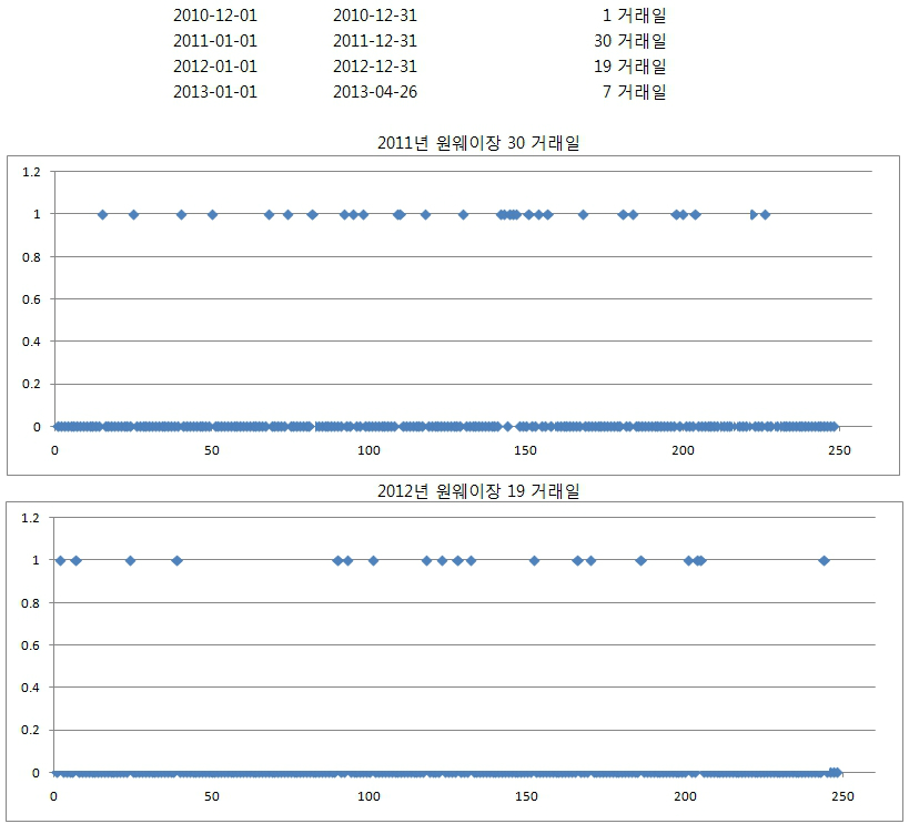 아래와 같이 2011년은 30거래일.. 12년 19 거래일..