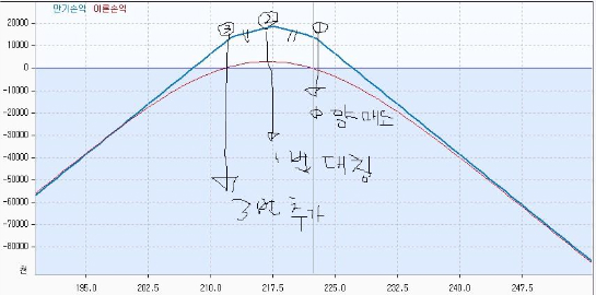 등가 양매도를 친 사람은 이 레인지를 어떻게 조절할 것인가를 더울 고민하게 됩니다.