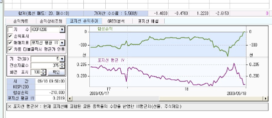 포지션 오늘 손익 추이 등가 양매도입니다.