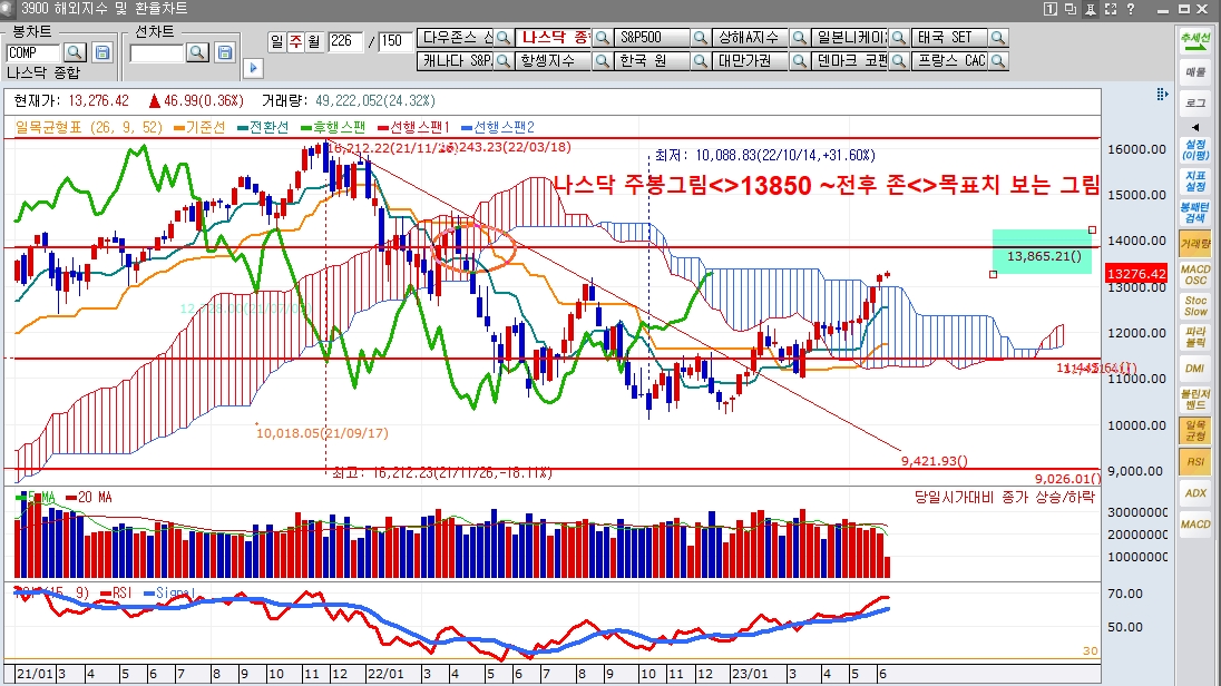 나스닥 ,< 주봉 그림 입니다,> 목표치 14000~ 13800 전후 존 이 1차 상승 목표치 라는 사견 입니다,