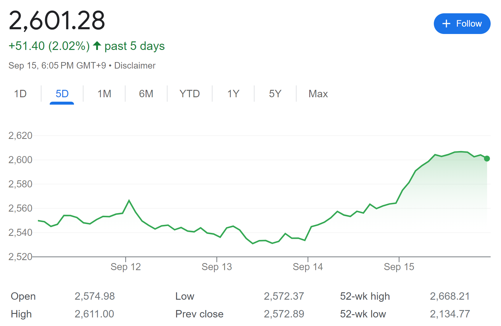 8월 미국 소비자 물가지수가 헤드라인 지수는 높게 나왔지만 에너지와 식품을 제외한 근원 지수는 무난하게 나와 미국 10년치 국채 금리는 소폭 하락하였습니다. 그러나 유가가 계속 상승하면서 연준이 올해 안에 한번 더 금리 인상을 할 수도 있다는 가능성에 금요일 다시 소폭 올랐습니다.