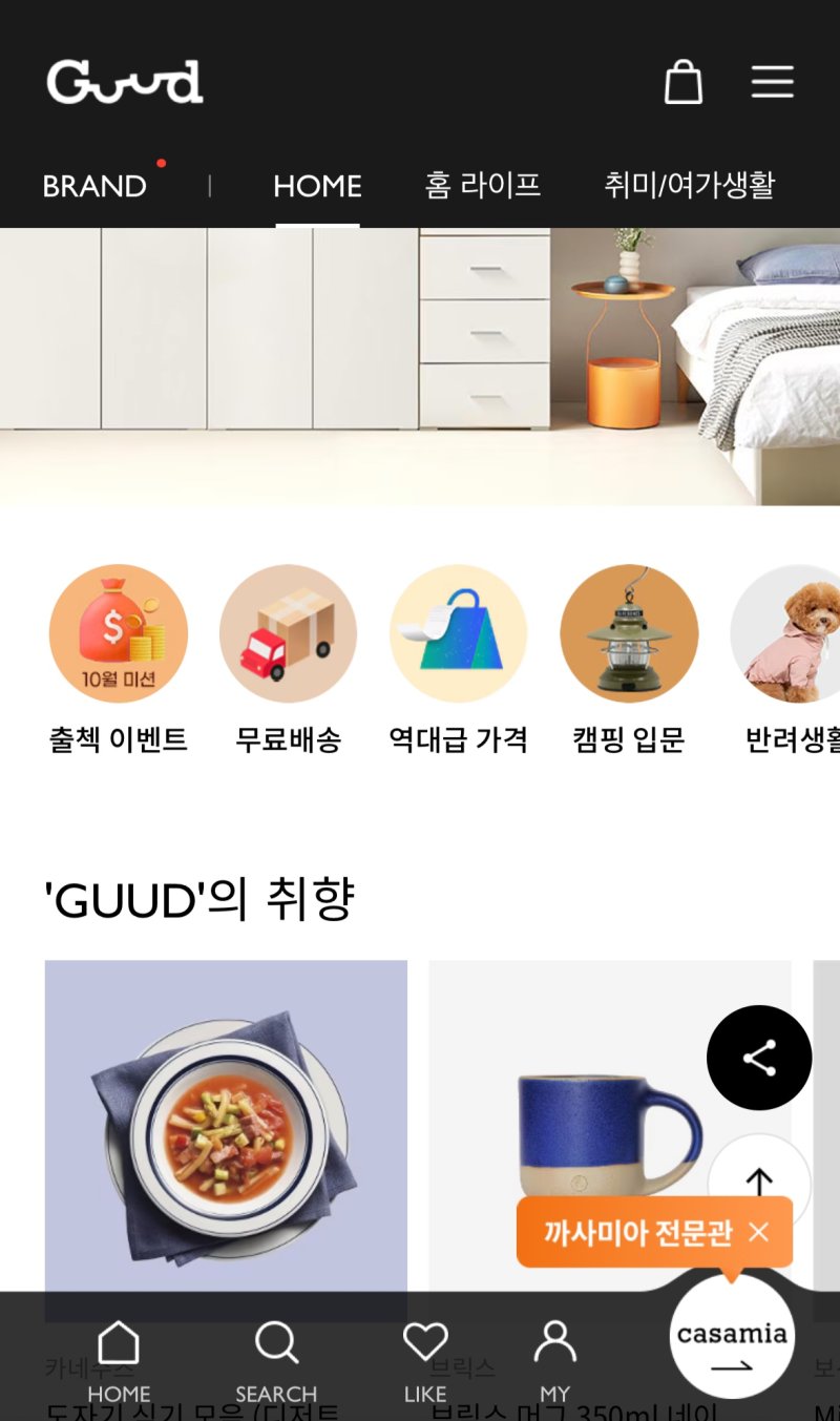 신세계까사는 트렌디한 국내외 상품과 브랜드를 큐레이션하는 온라인 쇼핑 플랫폼 '굳닷컴'을 통해 젊은 세대의 취향을 공략하고 있다. 자사 제품만 판매하던 브랜드몰 형태에서 벗어나 가구부터 소품, 생활 용품, 패션, 뷰티에 이르기까지 감각적인 라이프스타일 제품을 총망라한 것이 특징이다. 최근에는 식음료 분야까지 카테고리를 확대했다. 젊은 소비자들의 관심도가 높은 이색 제품들을 다양하게 선보이며 영역을 점차 넓혀 나가겠다는 전략이다.