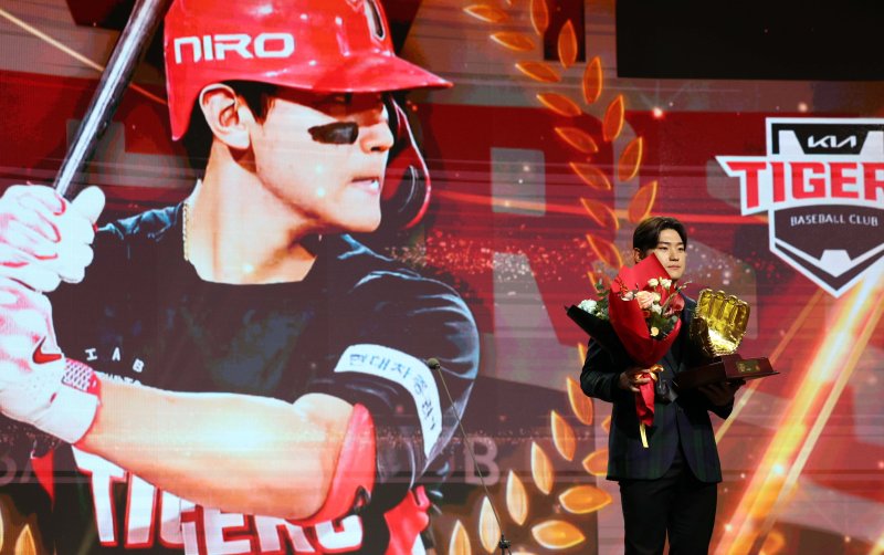 | 지난 1일 2024 컴투스프로야구 리얼글러브 어워드에서 올해의 선수상을 수상한 김도영. 뉴시스 |
