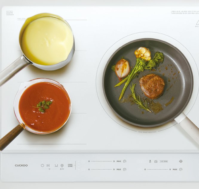 이 밖에 쿠쿠전자는 인덕션 제품 '쿠쿠 셰프스틱 프리존 인덕션 레인지'를 판매 중이다. 쿠쿠 셰프스틱 프리존 인덕션 레인지는 화구 경계 없이 초고화력을 전 화구에서 활용할 수 있는 것이 특징이다. 4분할 콰트로 프리존은 더 넓고 촘촘한 코일로 화구 간 경계를 최소화한다. 다양한 음식을 동시에 조리할 수 있어 요리 시간을 절약할 수 있다.