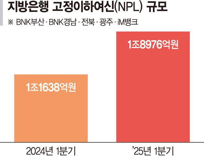 지역 경기가 악화하면서 지방은행의 부실채권 규모가 1년 만에 60% 넘게 급증한 것으로 나타났다. 지방 기업들이 흔들리면서 기업대출 연체율도 뛰었다.