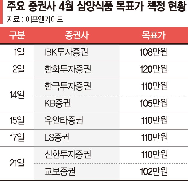 한화투자증권은 이달 들어 삼양식품의 목표가를 120만원으로 제시했고, 한국투자증권과 유안타증권, LS증권 역시 110만원의 목표주가를 새로 내걸었다.
