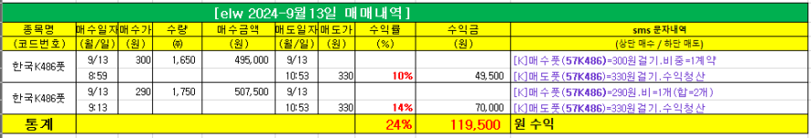 13일(금) elw 매매에서는 당일 단타 매매로 24% 수익을 챙겼습니다.