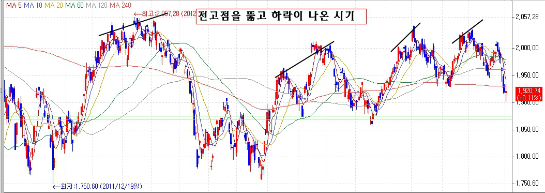 전고점을 돌파할때 거래량이 수반되었다면 대세상승으로 예측해 볼 수 있으나 거래가 없는 돌파라면 속임수일 가능성이 높다.